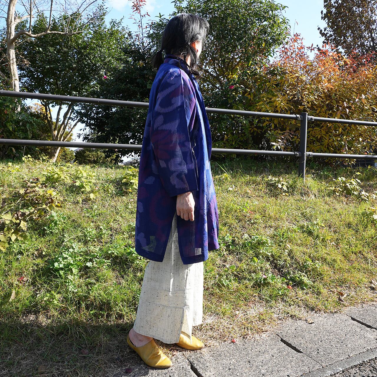 アンティーク夏の紗の着物を贅沢に使用したロング丈のジャケットです。