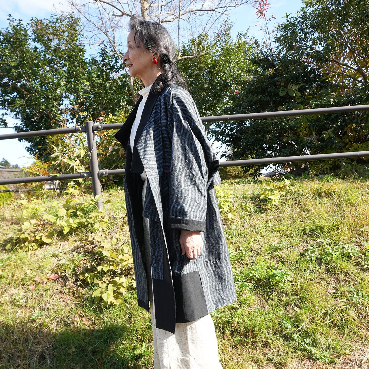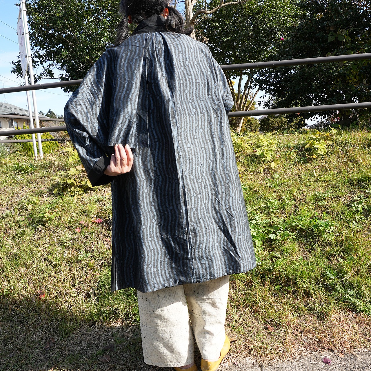 アンティーク着物を贅沢に使用したマントスタイルのコートです。